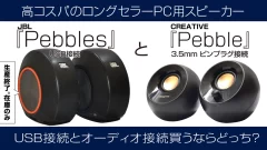 そこでオーディオケーブル接続の「CREATIVE PEBBLE」を購入。2000円台(2024年9月現在)の割に音質は結構良かったので、このままでもいいかなとか思っています。